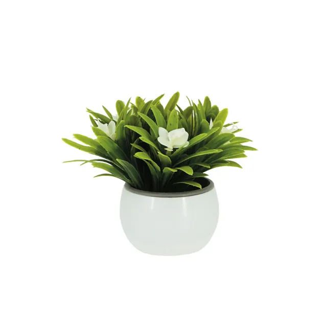 SMALL WHITE POT WITH GREENERY AND FLOWERS
