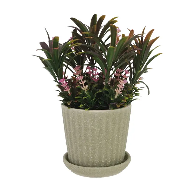 SMALL SALMON POT WITH PLATE GREENERY AND FLOWERS