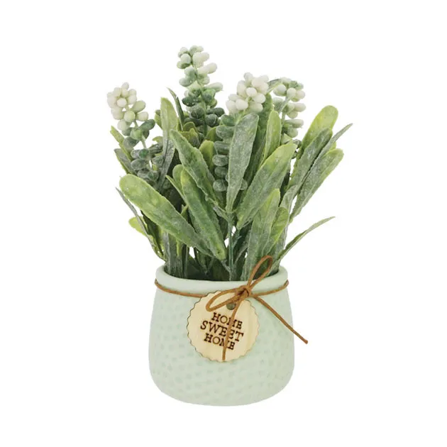 SMALL CYAN POT WITH GREENERY AND FLOWERS