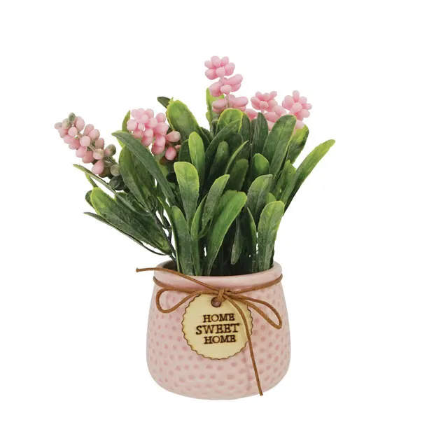 SMALL GREEN POT WITH GREENERY AND FLOWERS