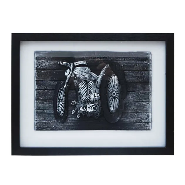 ΠΙΝΑΚΑΣ ΣΕ ΞΥΛΙΝH KOΡΝΙΖΑ/ΓΥΑΛΙ - ΜΟΤΟΣΙΚΛΕΤΑ ΑΣΠΡΟΜΑΥΡΟ 40x30cm 32ΚΙΒ