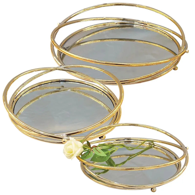 ΔΙΣΚΟΙ ΜΕΤΑΛΛΙΚΟI ΧΡΥΣΟ ΣΕΤ/3 ΣΤΡΟΓΓΥΛΟΙ ΜΕ ΚΑΘΡΕΦΤΗ ΛΟΞΟΙ ΚΥΚΛΟΙ ΧΕΡΟΥΛΙΑ - S:Φ25, M:Φ30, L:Φ35cm 3/ΚΙΒ