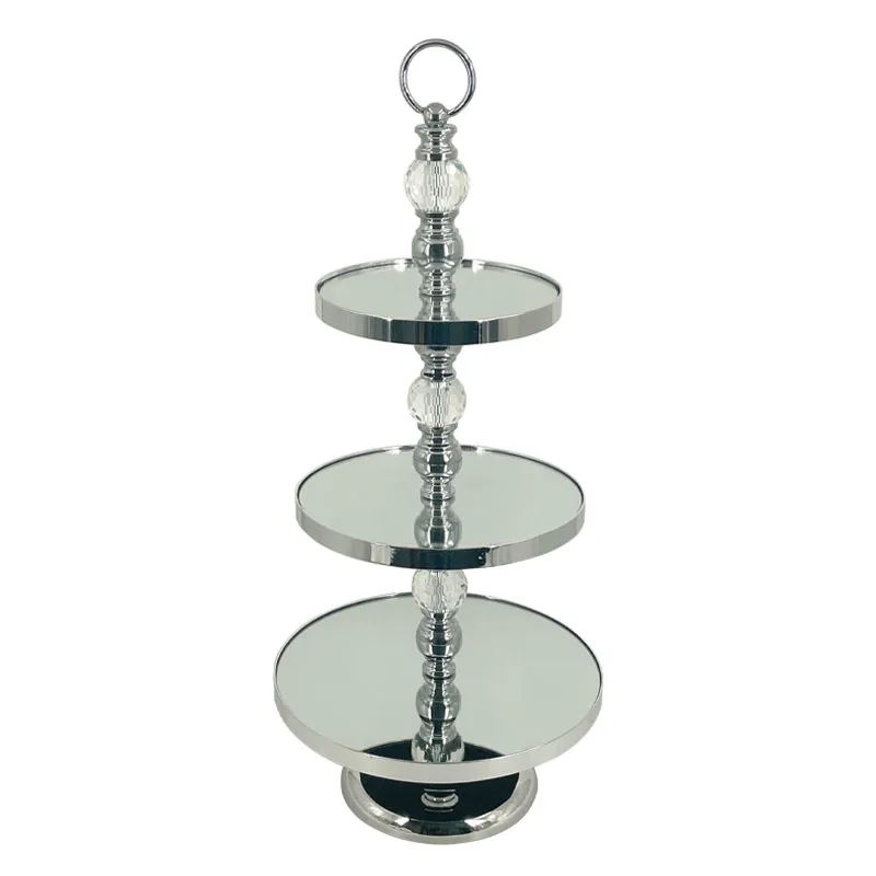 ΕΤΑΖΕΡΑ ΜΕΤΑΛΛΙΚΗ ΑΣΗΜΙ/ΛΕΥΚΟ ΣΤΡΟΓΓΥΛΗ 3 ΔΙΣΚΩΝ ΜΕ ΚΡΥΣΤΑΛΛΑ & ΚΑΘΡΕΦΤΗ - Φ30x68cm 6/ΚΙΒ