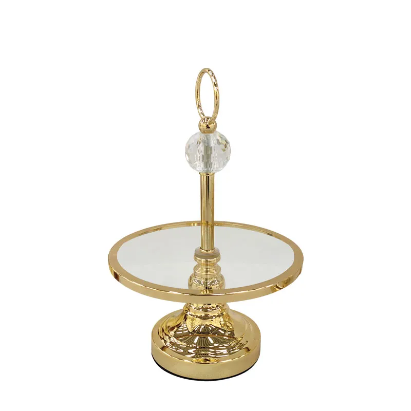 ΕΤΑΖΕΡΑ ΜΕΤΑΛΛΙΚΗ ΧΡΥΣΟ/ΛΕΥΚΟ ΜΟΝΗ ΣΤΡΟΓΓΥΛΗ ΙΣΙΑ ΜΕΓΑΛΗ ΜΕ ΚΡΥΣΤΑΛΛΟ & ΓΥΑΛΙ - Φ23x35cm 12/ΚΙΒ