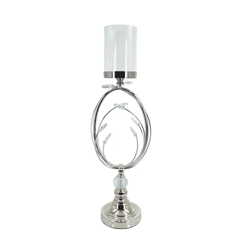 ΚΗΡΟΠΗΓΕΙO ΜΕΤΑΛΛΙΚO ΑΣΗΜΙ/ΛΕΥΚΟ ΜΕ ΓΥΑΛΙ ΚΡΥΣΤΑΛΛΑ ΜΠΟΥΜΠΟΥΚΙΑ ΜΕΓΑΛΟ - Φ18x49.5cm 6/ΚΙΒ