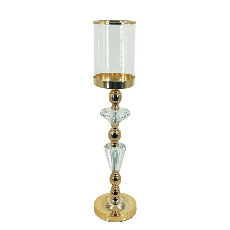ΚΗΡΟΠΗΓΕΙO ΜΕΤΑΛΛΙΚO ΧΡΥΣΟ/ΛΕΥΚΟ ΜΟΝΟ ΚΛΑΣΙΚΟ ΜΕ ΚΡΥΣΤΑΛΛΑ & ΓΥΑΛΙ ΜΕΓΑΛΟ - Φ12x50cm 12/ΚΙΒ