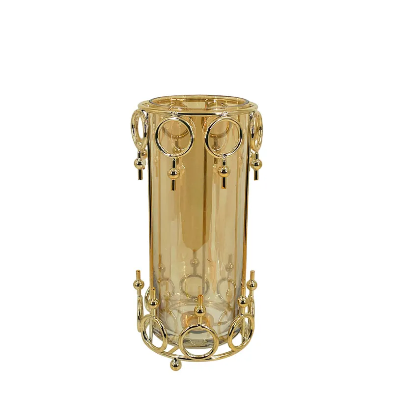ΚΗΡΟΠΗΓΕΙΟ ΜΕΤΑΛΛΙΚΟ ΧΡΥΣΟ/ΜΕΛΙ ΚΥΛΙΝΔΡΟΣ ΚΥΚΛΩΝ ΜΕΓΑΛΟ ΜΕ ΓΥΑΛΙ - Φ12x27cm 12/ΚΙΒ