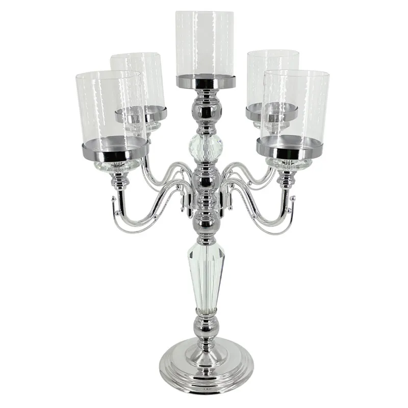 ΚΗΡΟΠΗΓΙΟ ΜΕΤΑΛΛΙΚΟ ΑΣΗΜΙ/ΛΕΥΚΟ ΚΛΑΣΙΚΟ ΜΕ ΚΡΥΣΤΑΛΛΑ 5 ΘΕΣΕΩΝ - Φ36x60cm 6/ΚΙΒ