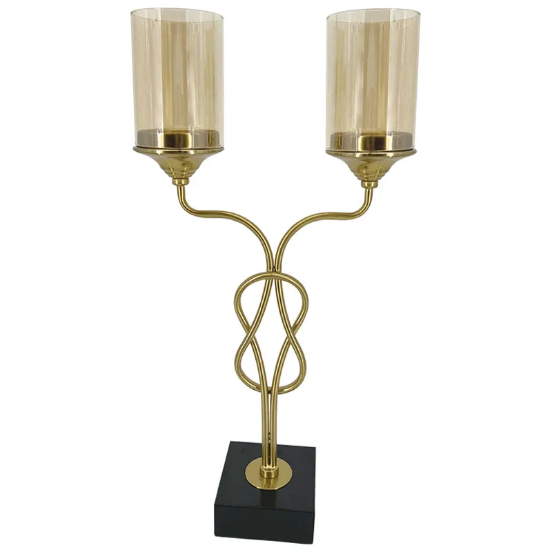 METAL DECORATIVE CANDLE HOLDER X2 WITH BASE