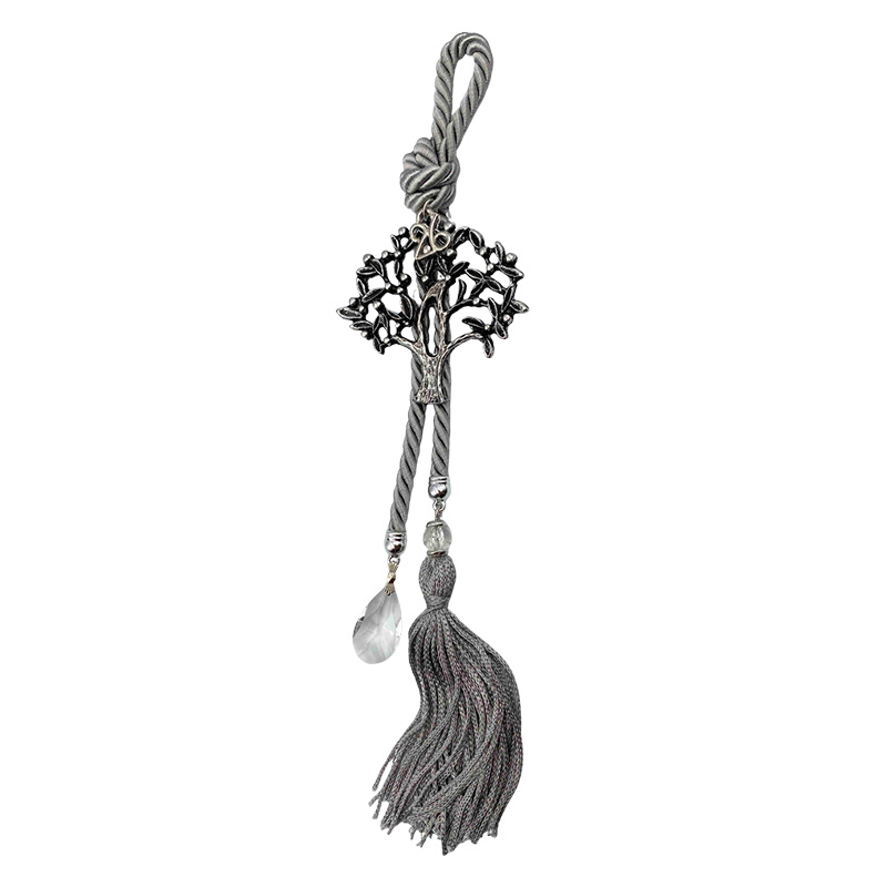 ΓΟΥΡΙ ΚΡΕΜΑΣΤΟ ΓΚΡΙ ΚΟΡΔΟΝΙ ΜΕ ΔΕΝΤΡΟ ΑΣΗΜΙ ΚΑΙ ΚΡΥΣΤΑΛΛΟ - Y30cm