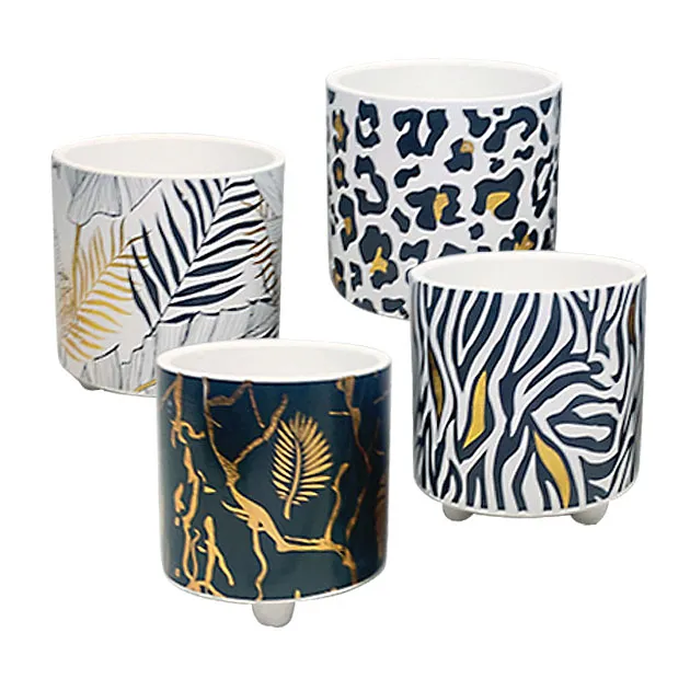 LARGE ROUND FLOWER POT WITH FΕΕT - DIGITAL PRINT