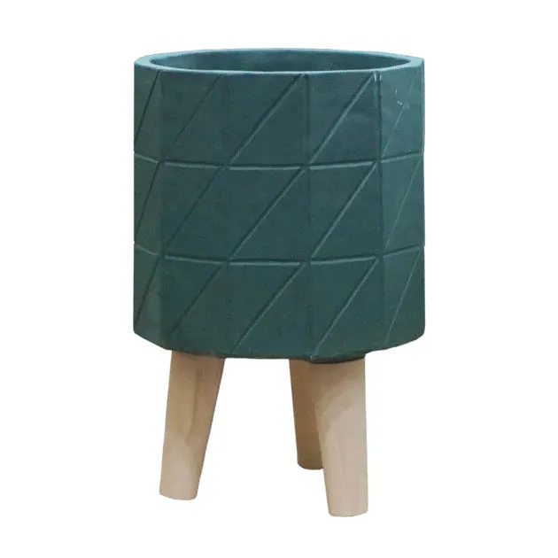 ΚΑΣΠΩ ΠΡΑΣΙΝΟ ΤΣΙΜΕΝΤENIO ΠΟΛΥΓΩΝΟ ME ΞΥΛΙΝΑ ΠΟΔΙΑ Φ19.5x18.5/28.5cm 4/ΚΙΒ