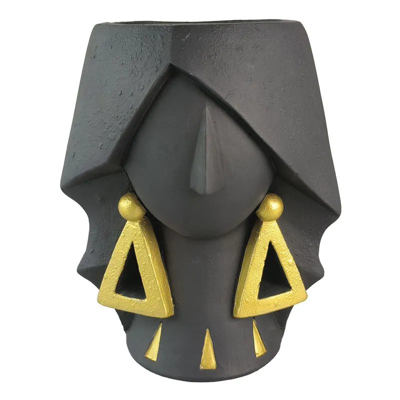 FEMALE HEAD POT WITH LONG TRIANGLE EARRINGS LARGE