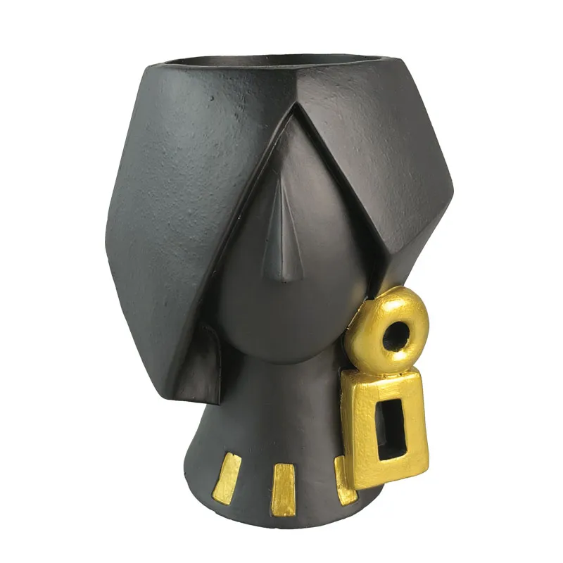 FEMALE HEAD POT WITH LONG SQUARE EARRINGS MEDIUM