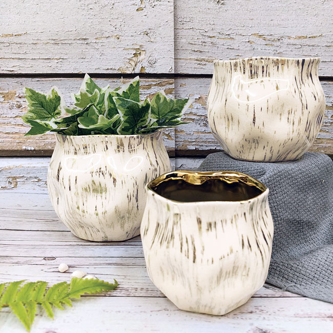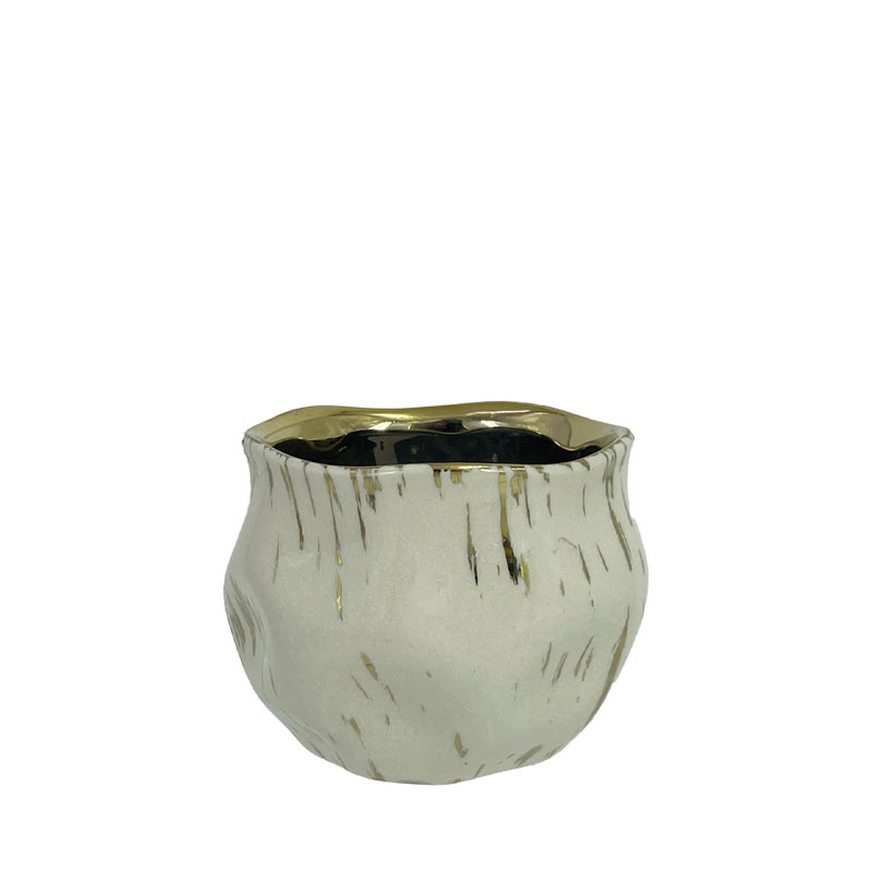 ΚΑΣΠΩ ΣΤΡΟΓΓΥΛΟ ΕΚΡΟΥ/ΧΡΥΣΟ ΥΑΛΩΜΕΝΟ ΠΟΥΓΚΙ ΜΕ ΒΑΘΟΥΛΩΜΑΤΑ ΜΙΚΡΟ - Φ12.5x11cm 1/24ΚΙΒ
