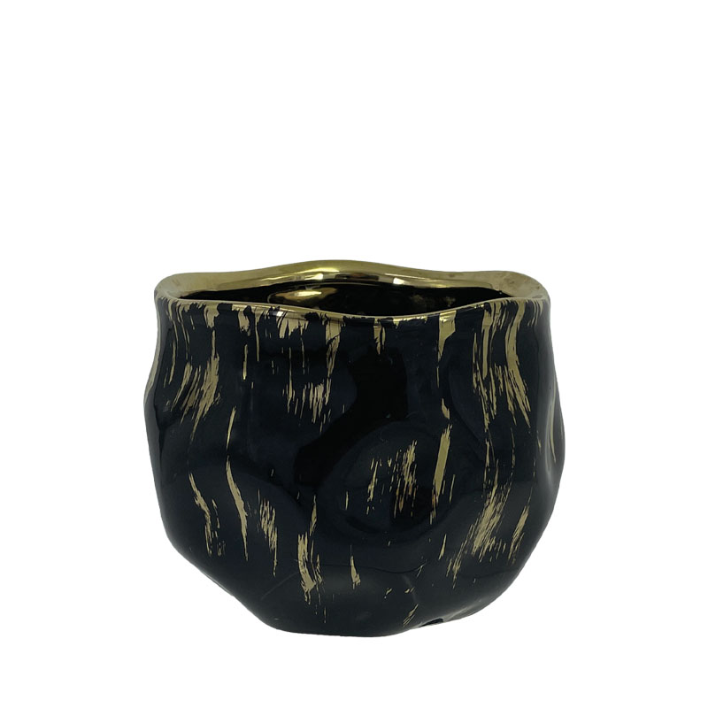 ΚΑΣΠΩ ΣΤΡΟΓΓΥΛΟ ΜΑΥΡΟ/ΧΡΥΣΟ ΥΑΛΩΜΕΝΟ ΠΟΥΓΚΙ ΜΕ ΒΑΘΟΥΛΩΜΑΤΑ ΜΕΣΑΙΟ - Φ14x12.5cm 1/18ΚΙΒ