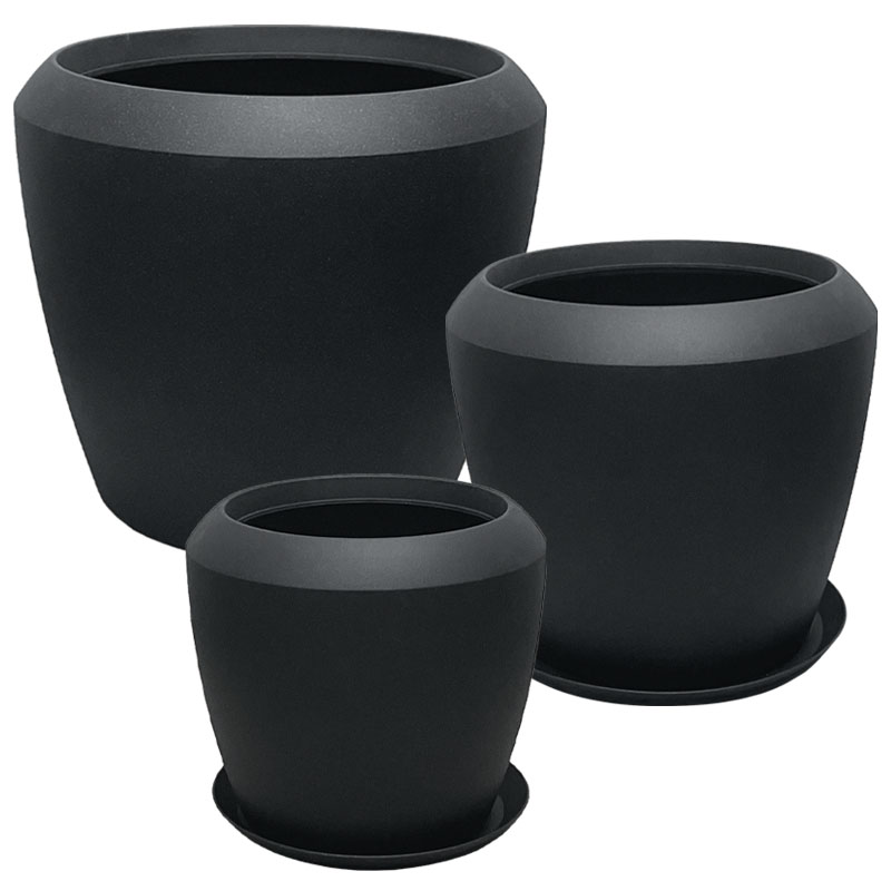 POLYRESIN ΚΑΣΠΩ ΜΕ ΠΙΑΤΟ ΣΕΤ/5 ΜΑΥΡΟ ΑΝΘΡΑΚΙ ΠΟΜΠΕ - L:Φ55.6x48.4, M:Φ44x39.5, S:Φ33.5x30.5cm