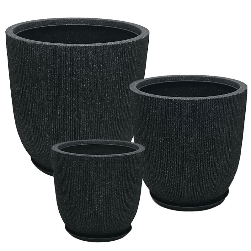 POLYRESIN ΚΑΣΠΩ ΜΕ ΠΙΑΤΟ ΣΕΤ/6 ΜΑΥΡΟ ΓΡΑΝΙΤΗ ΡΙΓΩΤΟ - L:Φ44x44.5, M:Φ37x37.5, S:Φ31x31.5cm