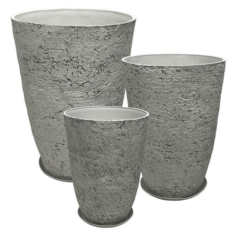 STONE POLYRESIN POT WITH SAUCER SET/6