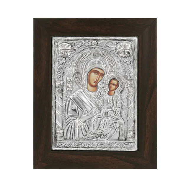 ALUMINUM RELIGIOUS ICON WITH BROWN FRAME