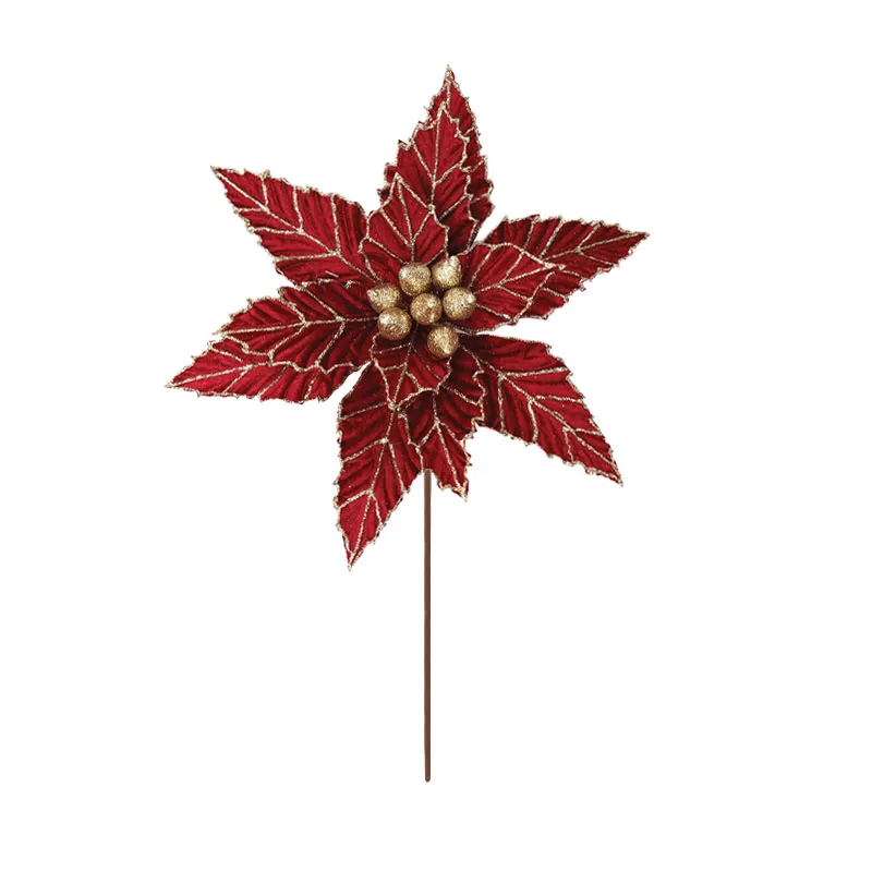 XMAS POINSETTIA FLOWER PIC WITH GLITTER